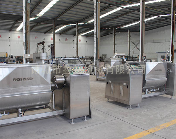 本機(jī)的U形鍋?lái)敳砍檎婵?,夾套采用蒸汽加熱,無(wú)段變速與蝸輪,減速機(jī)的組合傳動(dòng),增大了橫軸攪拌的力矩,采用食品級(jí)材質(zhì)材質(zhì)刮板的攪拌器,在物料的翻滾攪拌過(guò)程中,攪拌器與鍋體的充分接觸,確保了無(wú)攪拌死角。鍋體的開(kāi)蓋,卸料,復(fù)位采用液壓,機(jī)械傳動(dòng)控制,操作方便。真空炒制可降低炒制溫度,特別適應(yīng)于高粘度材料的炒制,避免了因過(guò)度受熱引起色澤及口味的變化,保持了物料原有的色香味。提高了炒制效率,并降低能耗,縮短了炒制時(shí)間。